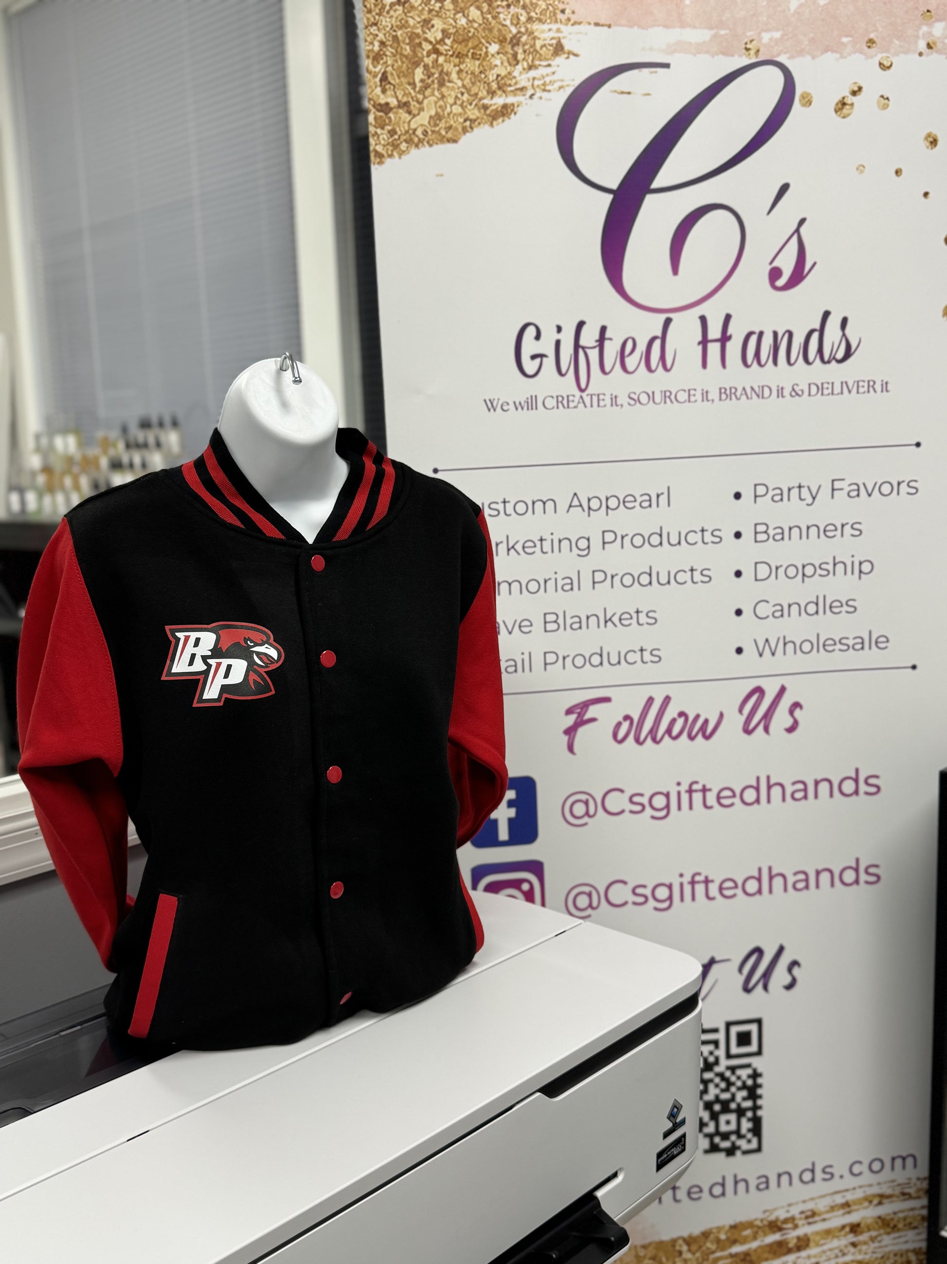 Introducing the Brooke Point Varsity Jacket, a stylish and comfortable choice for everyone. Made with durable materials and available in adult sizes, this jacket is the perfect combination of fashion and function. Stay warm and show your school pride with this must-have outerwear.