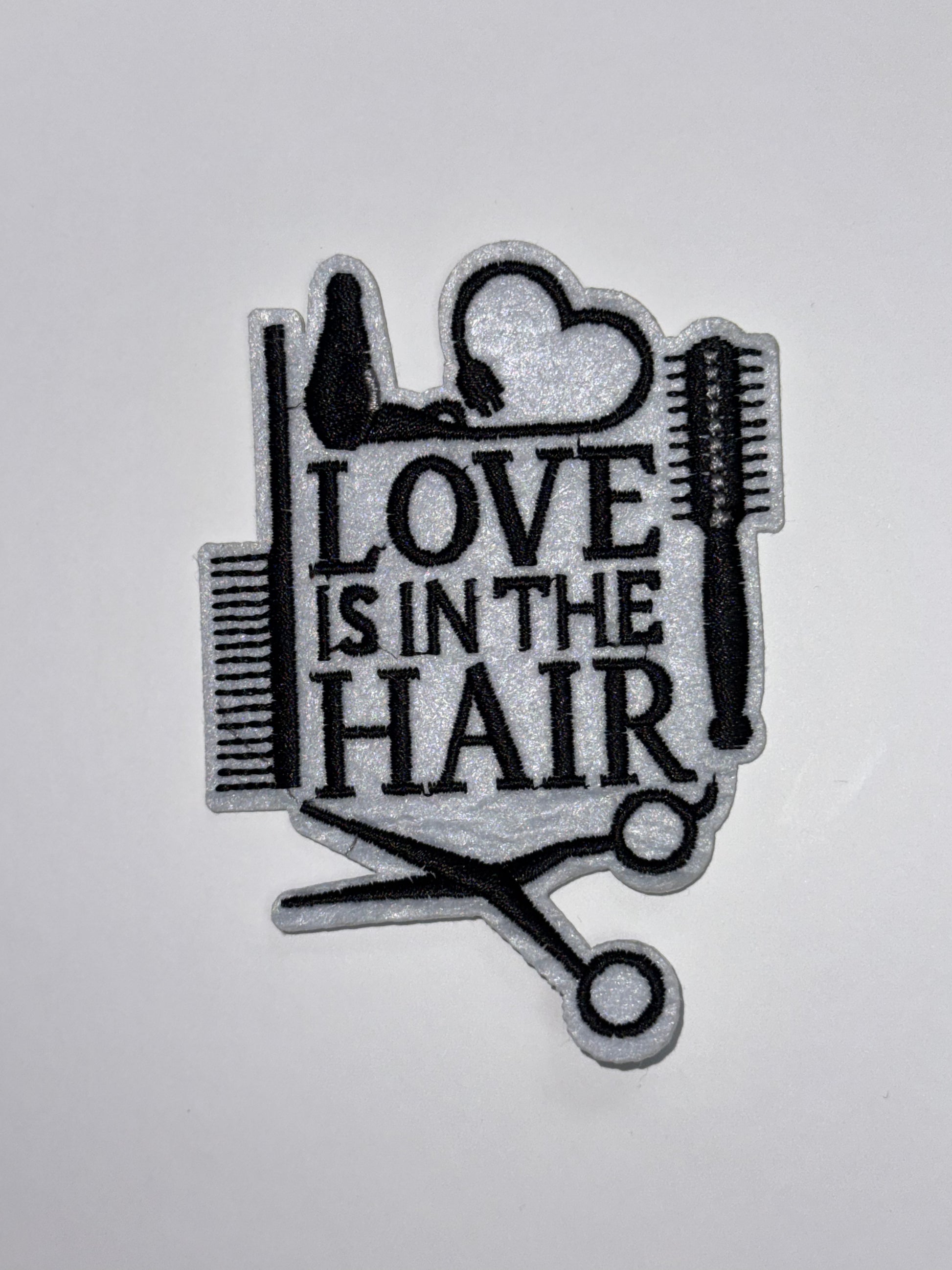 Enhance any garment with our Love Is In The Hair iron on patch. Featuring detailed embroidery, it adds a touch of love and personality to your clothing. Perfect for expressing your unique style and spreading love wherever you go!